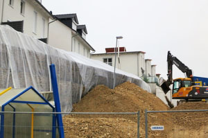 Stützmauer bekam plötzlich einen dicken Bauch und drohte ein-zustürzen.